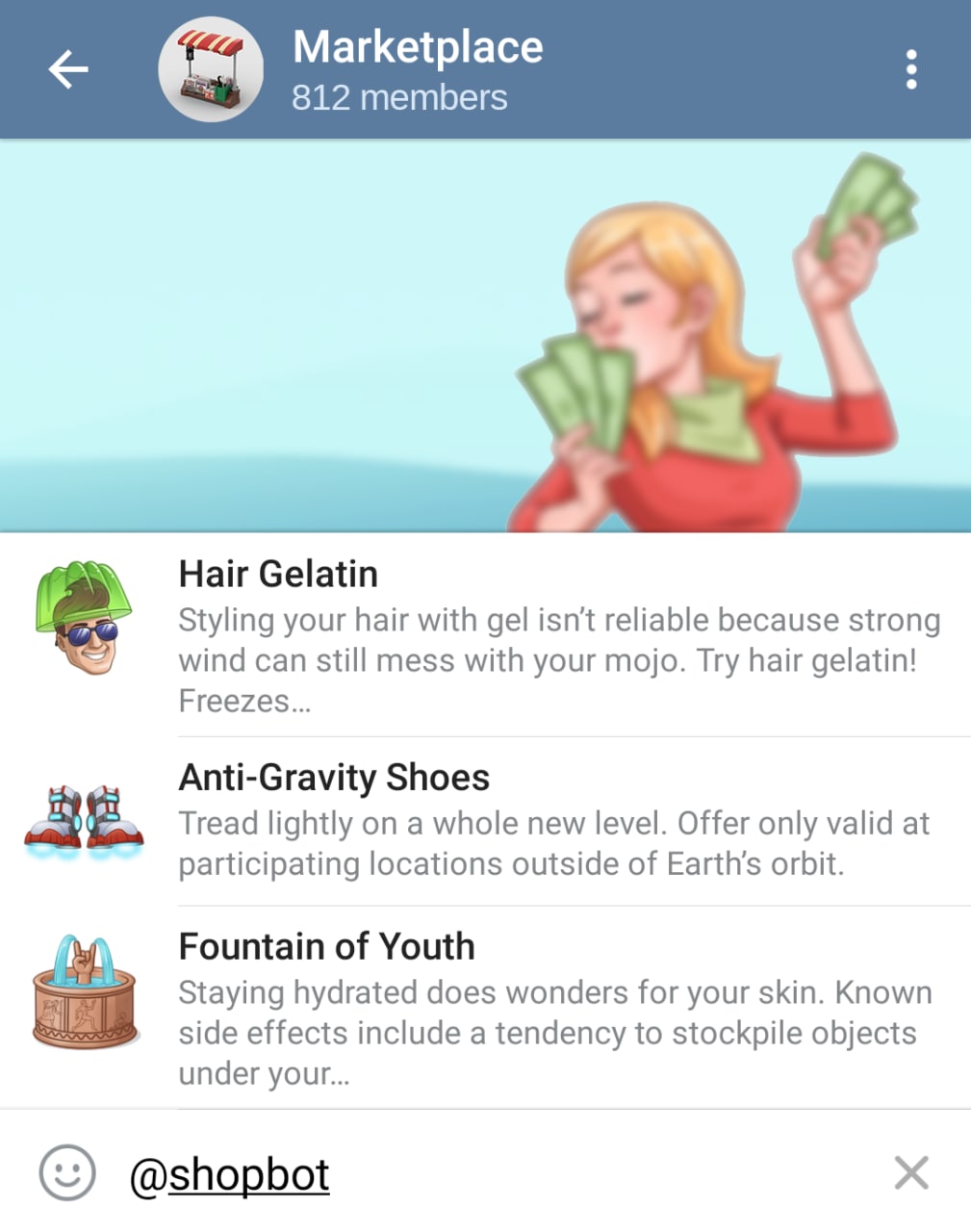 @ShopBot ... in any chat for an inline invoice.Check out @ShopBot for an example of a virtual storefront – then use our dedicated guides for digital and physical products to build your own.